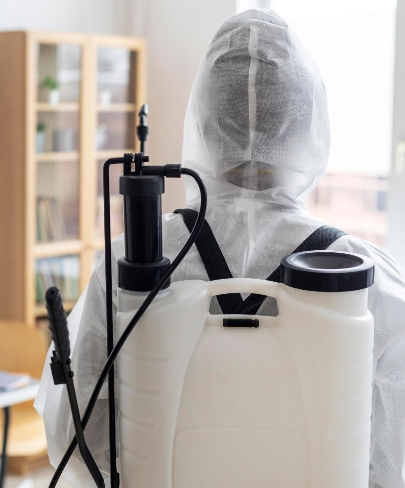 Aplicação de ozônio para eliminar odores, microrganismos e garantir a segurança biológica do ambiente.